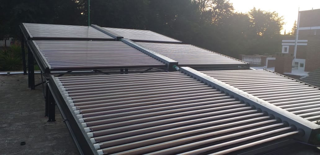 Un colector solar esta compuesto por 50 tubos de vacío que recolectar la energía del sol y calientan el agua. Se utilizan cuando se necesitan generar mucha energía térmica como es el caso de una piscina.