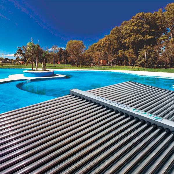 Para climatizar una piscina se utilizar colectores solares. Esta compuesto por 50 tubos de vacío que recolectar la energía del sol y calientan el agua. Se utilizan cuando se necesitan generar mucha energía térmica.